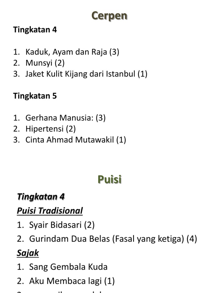 Kita hendaklah bijaksana dalam menyelesaikan sesuatu masalah. Kami berempat melakonkan cerpen hipertensi hasil karya illiyas zaidi, tingkatan 5. Pungut cerpen tingkatan 5 komsas. Hasil diatas adalah hasil pencarian dari anda cerpen hipertensi 【komsas spm tingkatan 5】: Gejalanya meliputi sakit kepala, nyeri dada atau sesak napas.