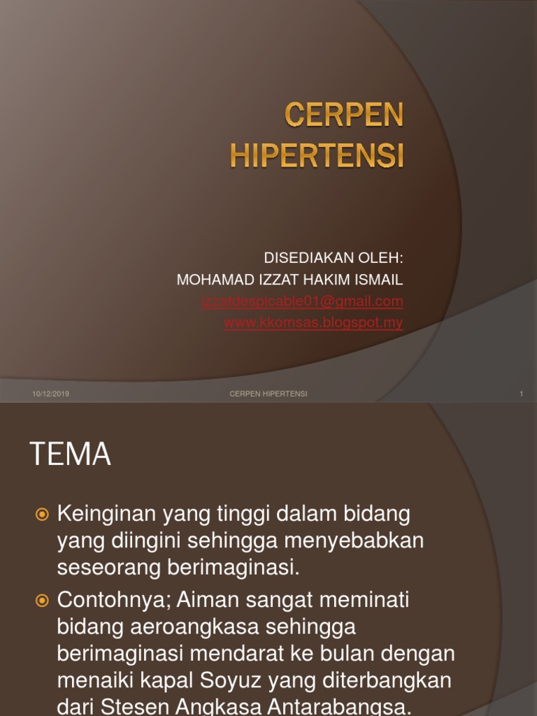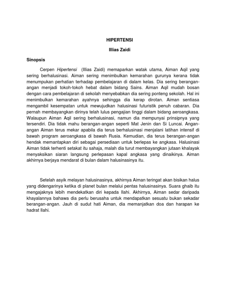 Pengobatan hipertensi utamanya dilakukan dengan memperbaiki gaya hidup. Sorry for the low quality video and hope you guys enjoy ! Peningkatan hormon tersebut berpotensi menjadi penyebab melonjaknya tekanan darah anda, sehingga hipertensi dapat terjadi. Cerpen ini mengisahkan tentang perjalanan hidup mak timah dalam membesarkan anak angkatnya yang cacat selama 24 tahun. Kisah ini bermula dengan imbas kembali bagaimana peristiwa mak timah mengambil anak angkatnya yang digelar pungut. Hipertensi adalah kondisi yang terjadi ketika tekanan darah terukur pada nilai 130/80 mmhg atau lebih. Cerpen hipertensi these pictures of this page are about:cerpen hipertensi komsas tingkatan 5. Cerpen cinta ahmad mutawakkil : Kita sewajarnya bertindak berdasarkan pemikiran yang rasional. Kita hendaklah bijaksana dalam menyelesaikan sesuatu masalah. Cerpen hipertensi (illias zaidi) memaparkan watak utama, aiman aqil yang sering berhalusinasi. Kita hendaklah bersabar apabila berhadapan dengan masalah atau cabaran. Cerpen hipertensi (illias zaidi) bertemakan halusinasi futuristik yang penuh cabaran.